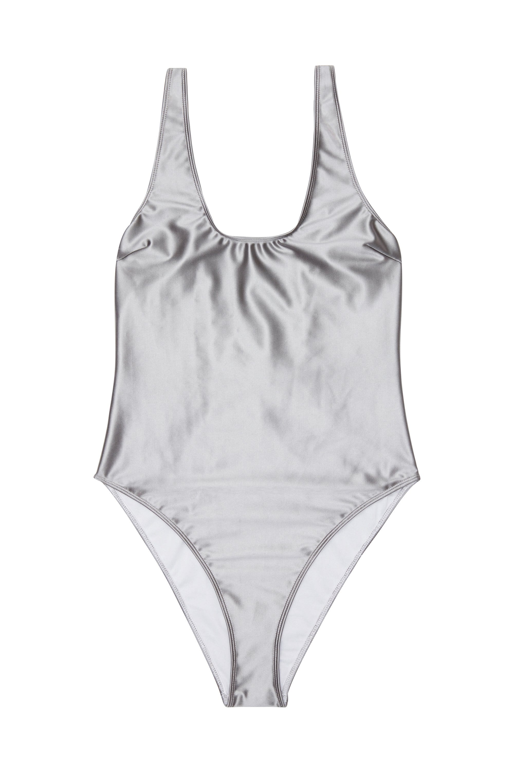 This metallic scoop Swimsuit is an essential addition to your holiday packing! It's simple and chic shape make it ideal for accessorising while you are poolside and the metallic silver fabric will ensure you’re seen.